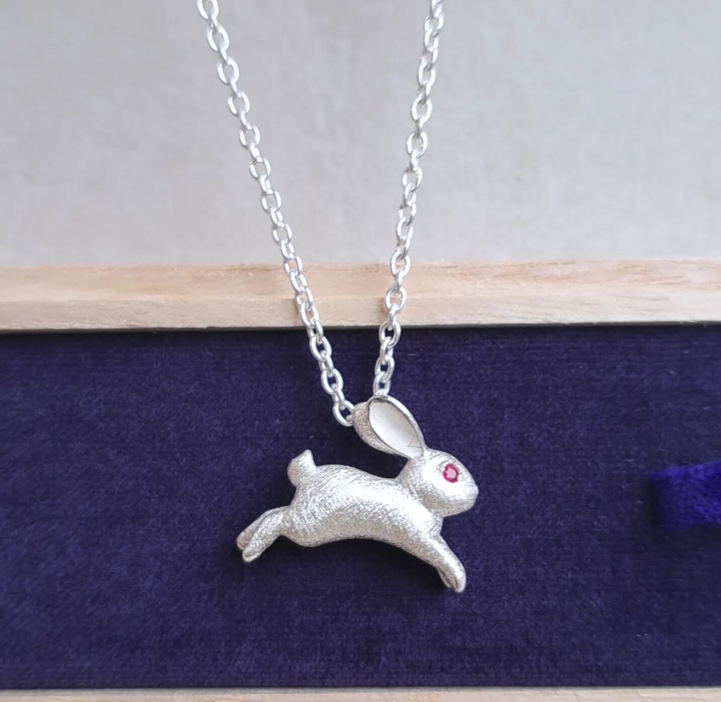 【両目ルビー 白うさぎ ペンダントトップ】 うさぎネックレス うさぎアクセサリー ウサギ 京都アクセサリー 京都ジュエリー