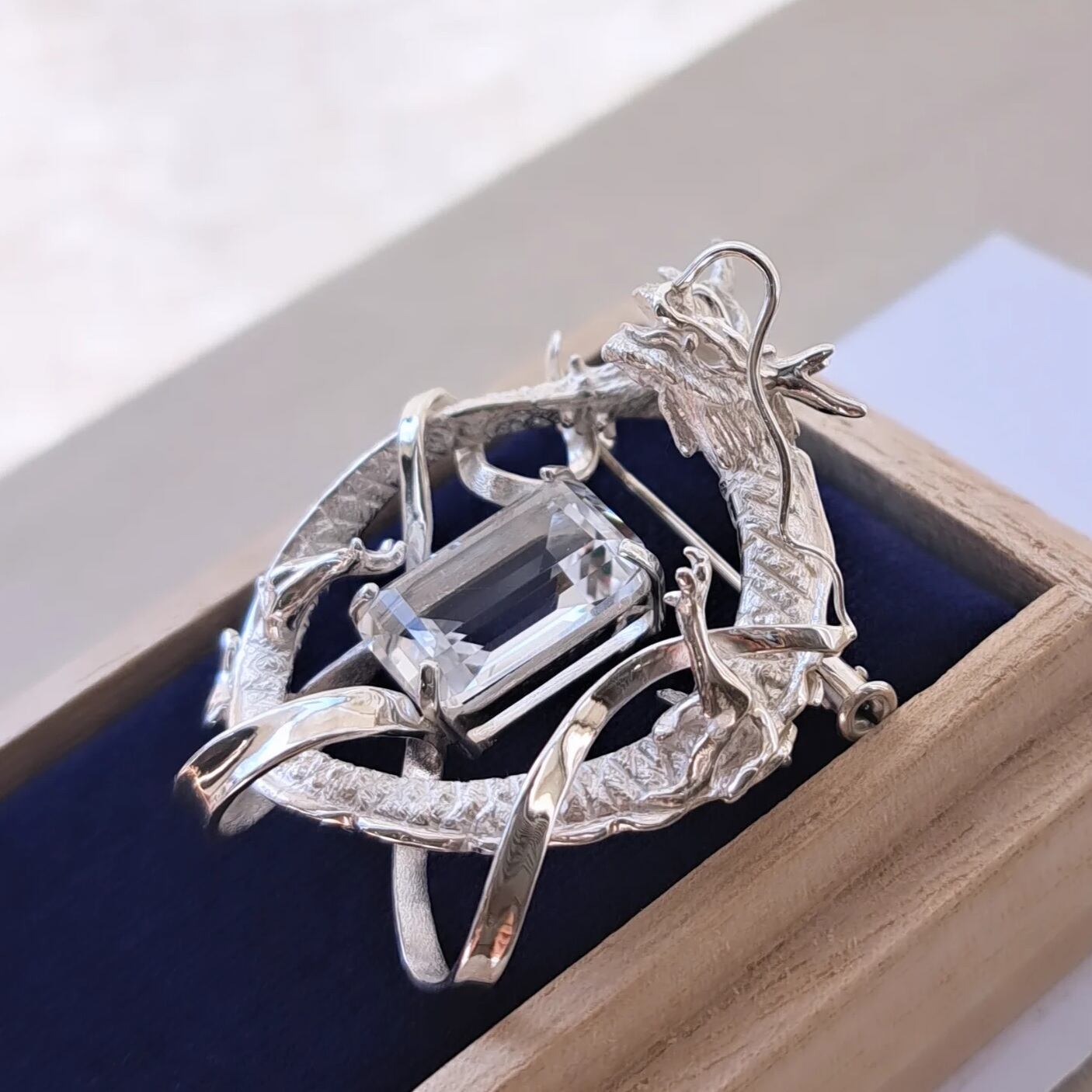 【 龍と水晶のブローチ シルバー925 】 龍アクセサリー 龍シルバー 龍ブローチ 水晶 プレゼント お祝い 京都
