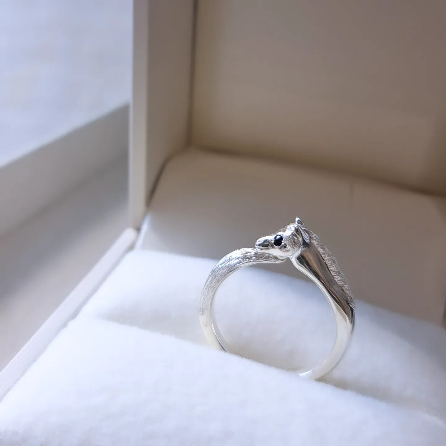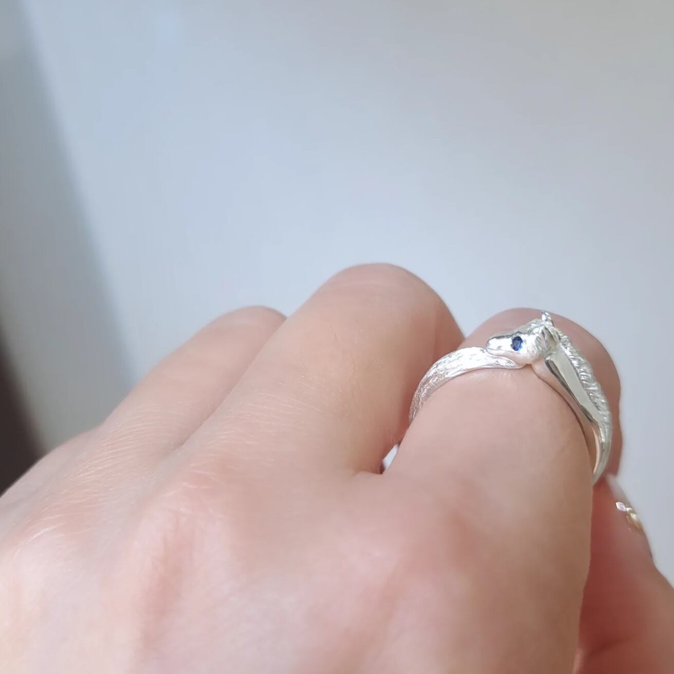 【両目サファイア 馬の指輪 】馬リング シルバー馬 シンプル馬 馬アクセサリー 馬ジュエリー 京都