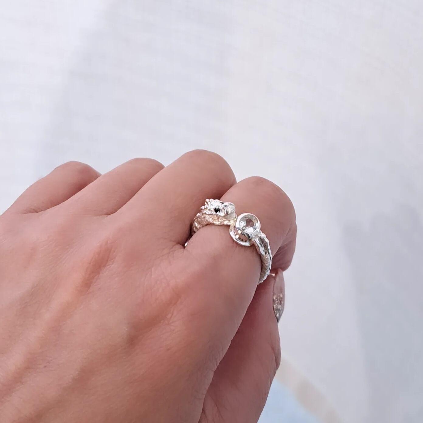 【 龍と水晶の指輪 龍リング 龍アクセサリー 龍ジュエリー 京都アクセサリー 京都