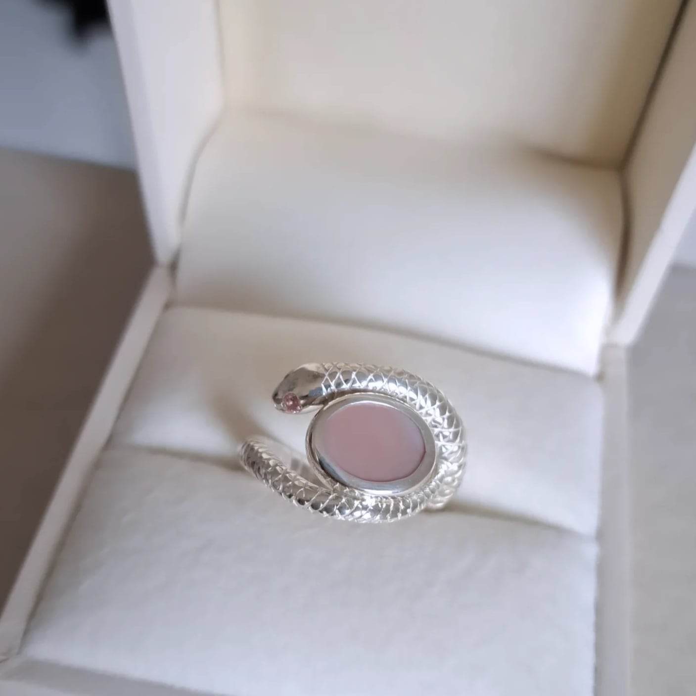【特別仕様 蛇の指輪 ピンクシェル 両目ピンクトトルマリン】蛇リング 太め蛇 蛇アクセサリー ヘビリング 京都