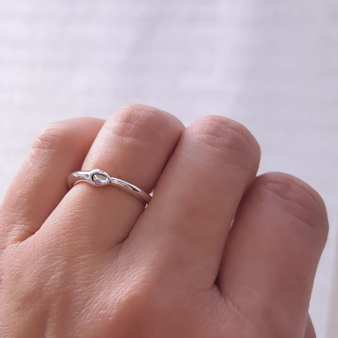【両目ピンクサファイア 蛇のペアリング】蛇 ペアリング ヘビペアリング ペアアクセサリー へびペアリング シンプル蛇リング