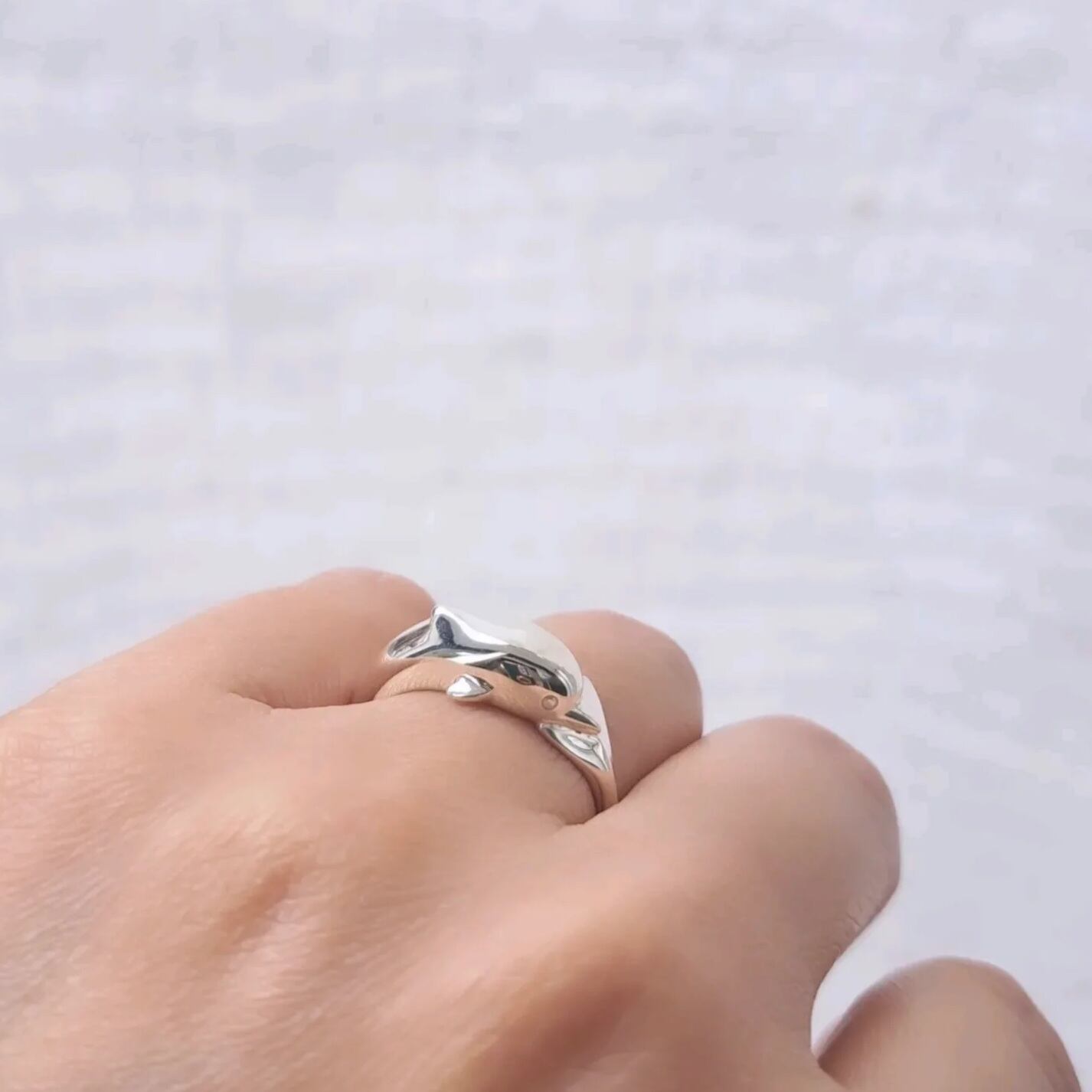 愛らしい表情にも癒されるイルカの指輪です。
