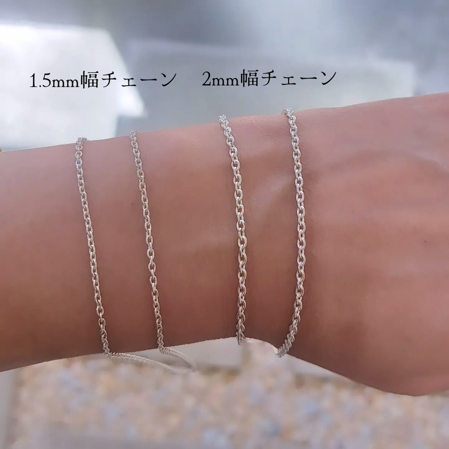2種類のチェーンも別売でご用意しております。