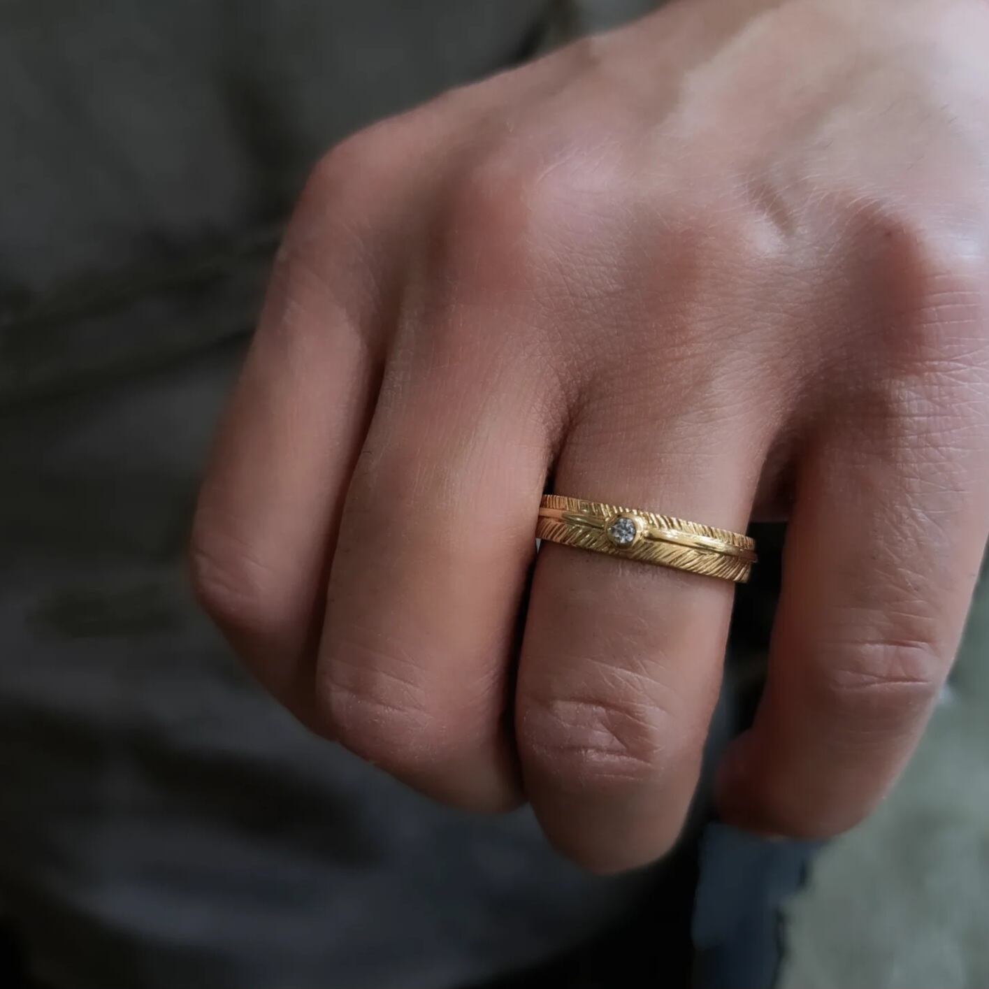 指に羽が1枚巻き付いたようなデザインで