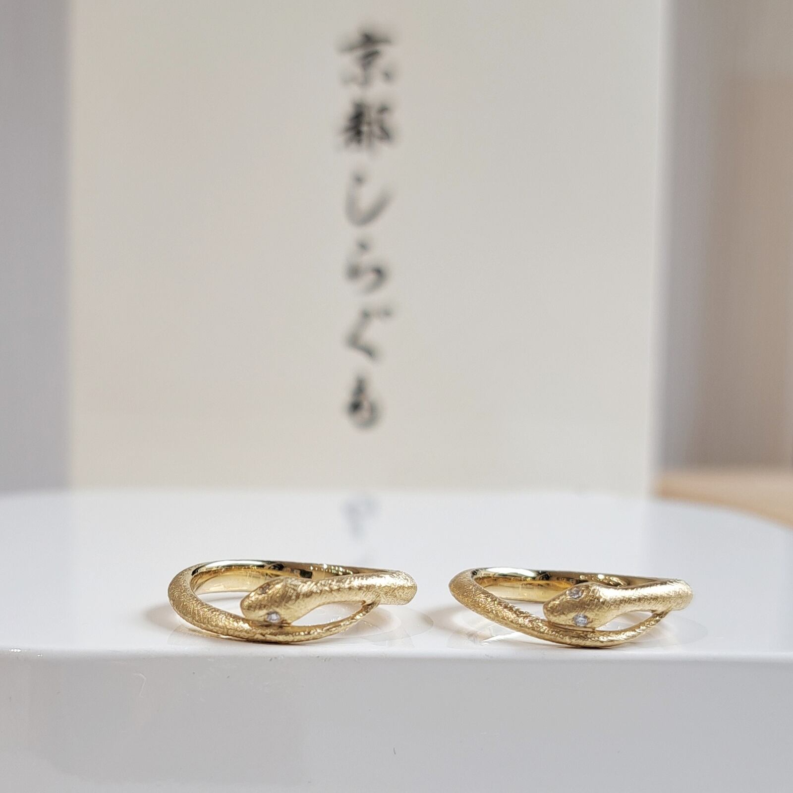 【18金 蛇 結婚指輪】両目ダイヤモンド マリッジリング お洒落な結婚指輪 京都結婚指輪 BASE