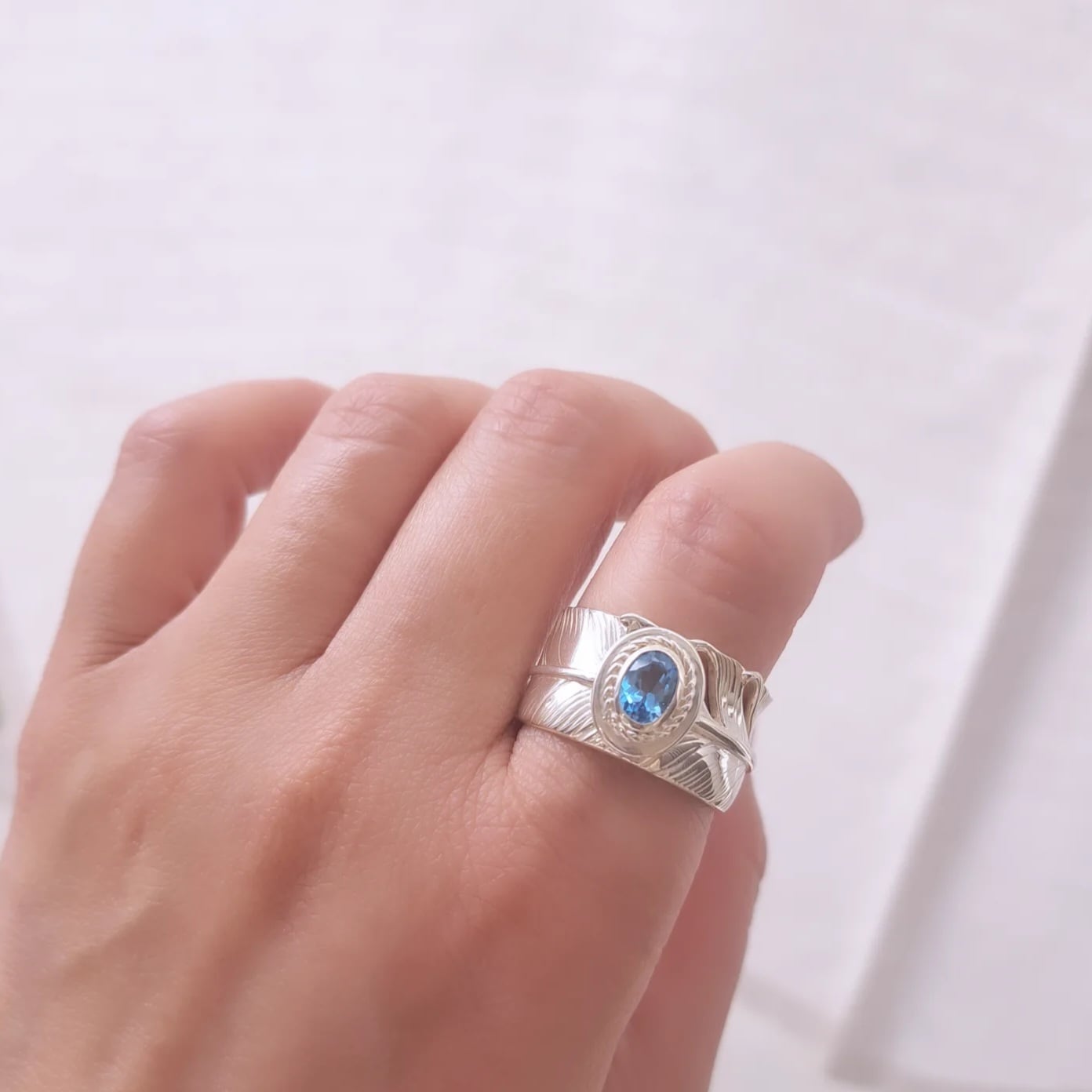 【ブルートパーズ フェザーリング】羽 羽根 シルバー925 羽 羽根 ペアリングもおすすめ