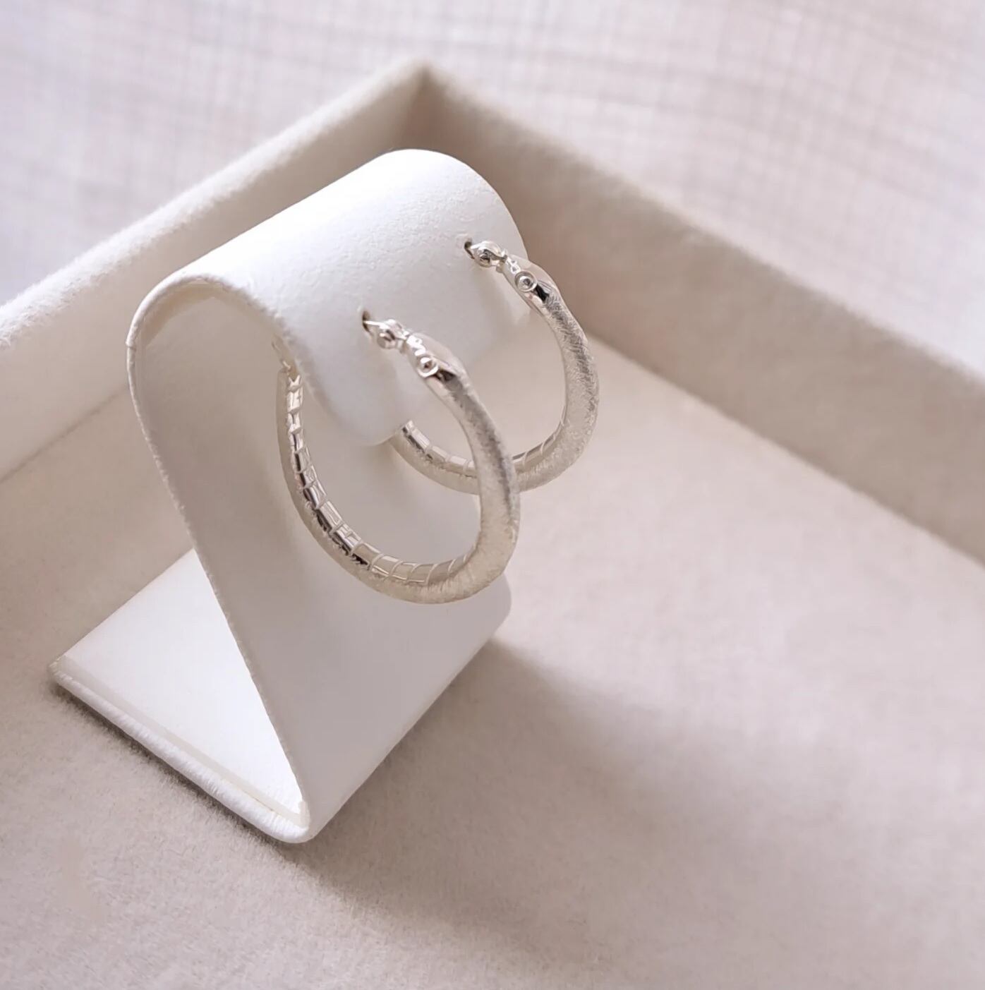 光の加減でキラキラと輝く蛇のフープピアスです。